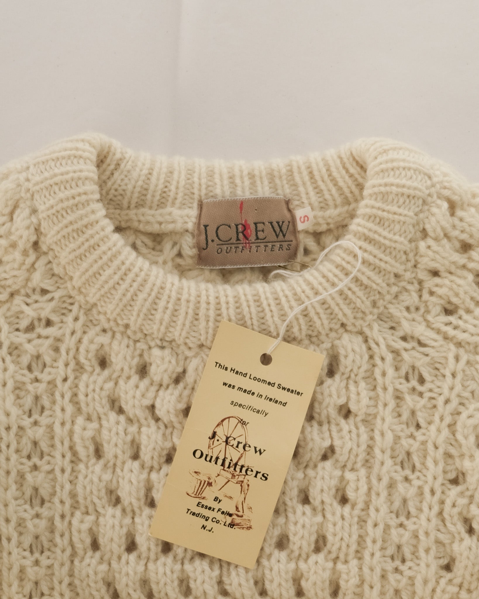Cream Aran knit sweater c. 1980s J Crew. Chunky, hand-loomed 100% pure wool. Pullover crewneck. Relaxed fit.